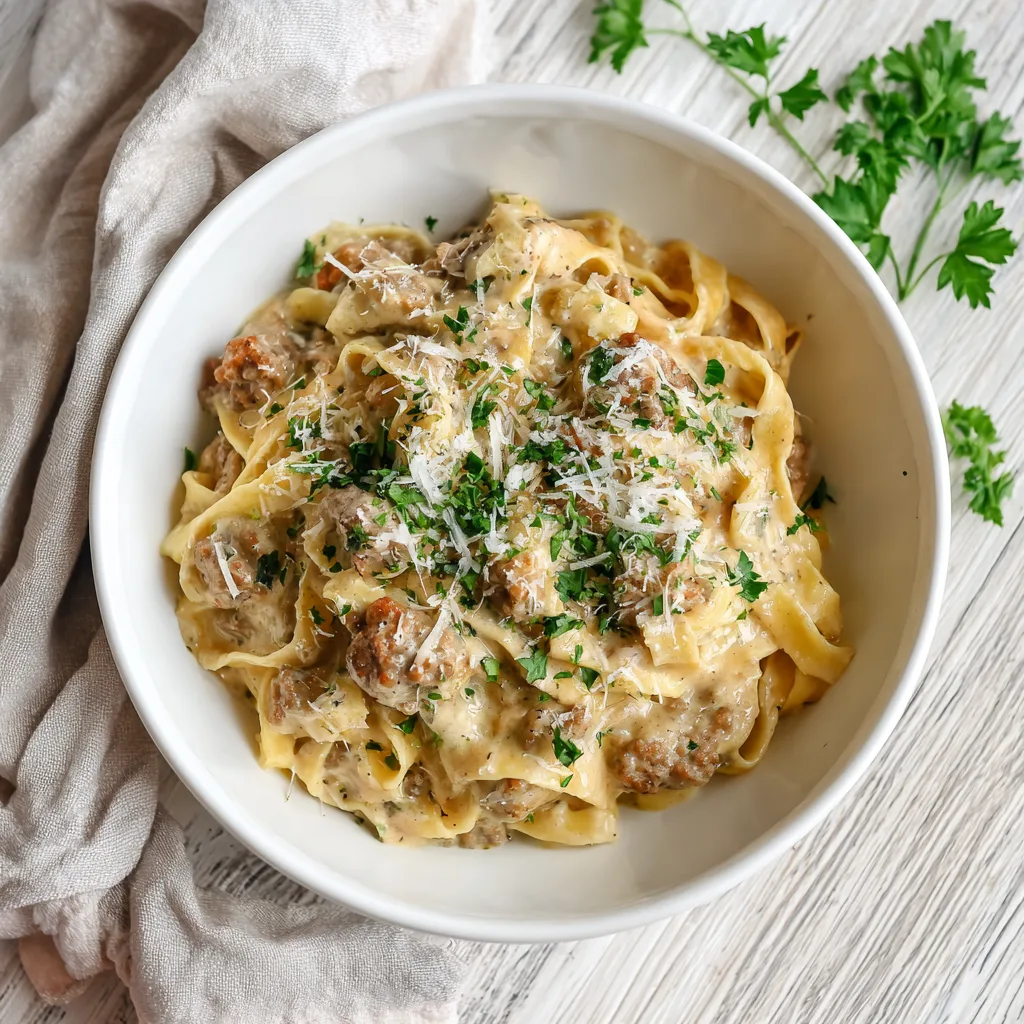 - Return sausage to skillet and toss with fettuccine, adding reserved pasta water as needed.