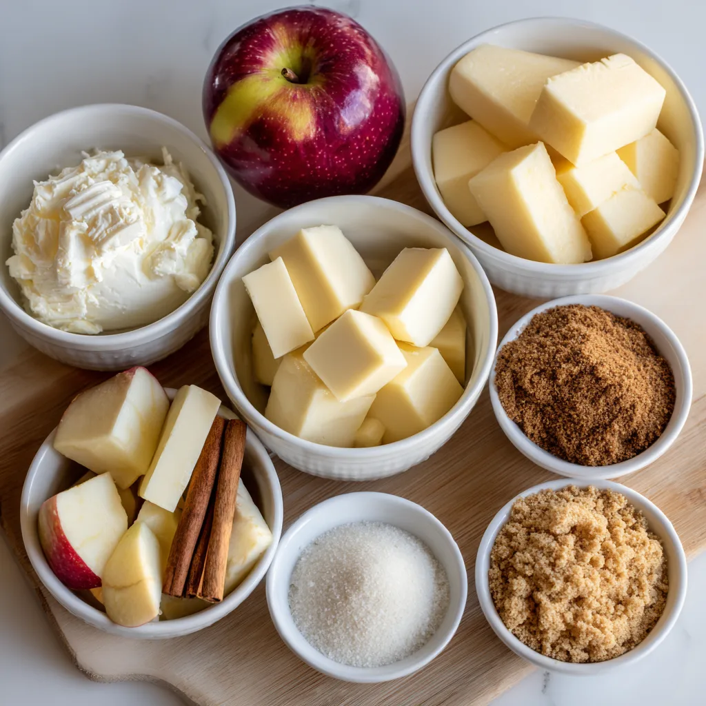 - For apples: heat butter in a pan, add apples, brown sugar, cinnamon, and nutmeg. Cook until softened; set aside to cool.